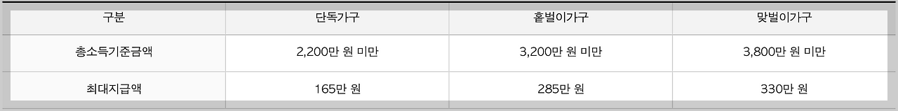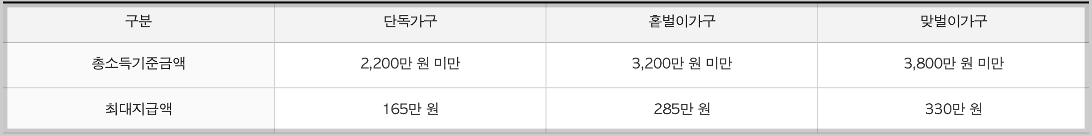 - 홑벌이 가구: 연소득 3,200만 원 이하.