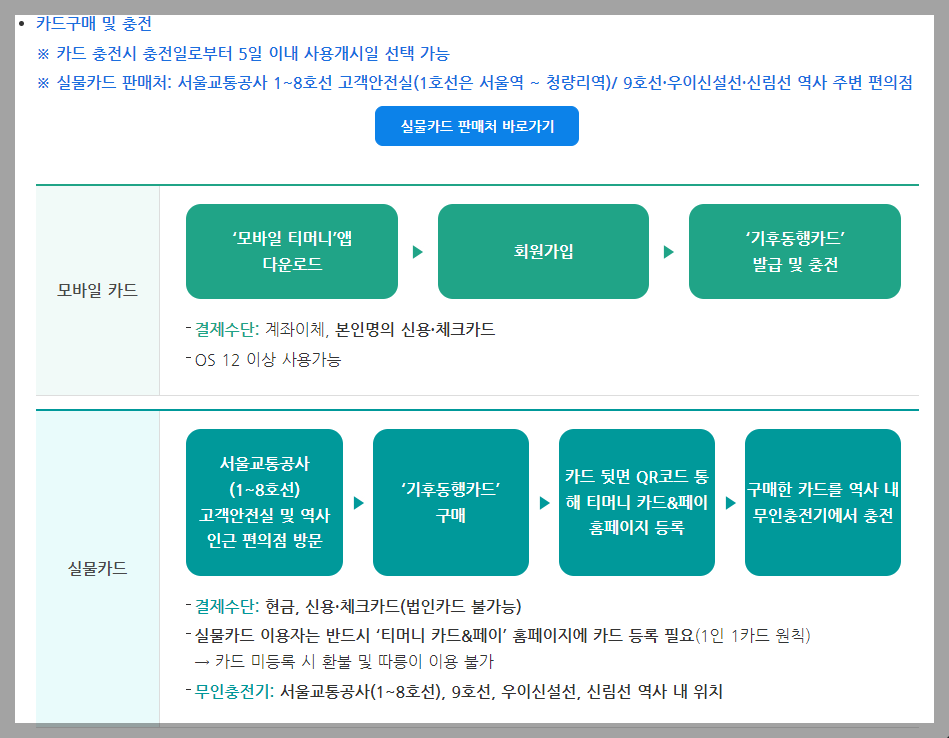 기후동행카드는 모바일 또는 실물 카드 형태로 구매하여 사용할 수 있습니다.