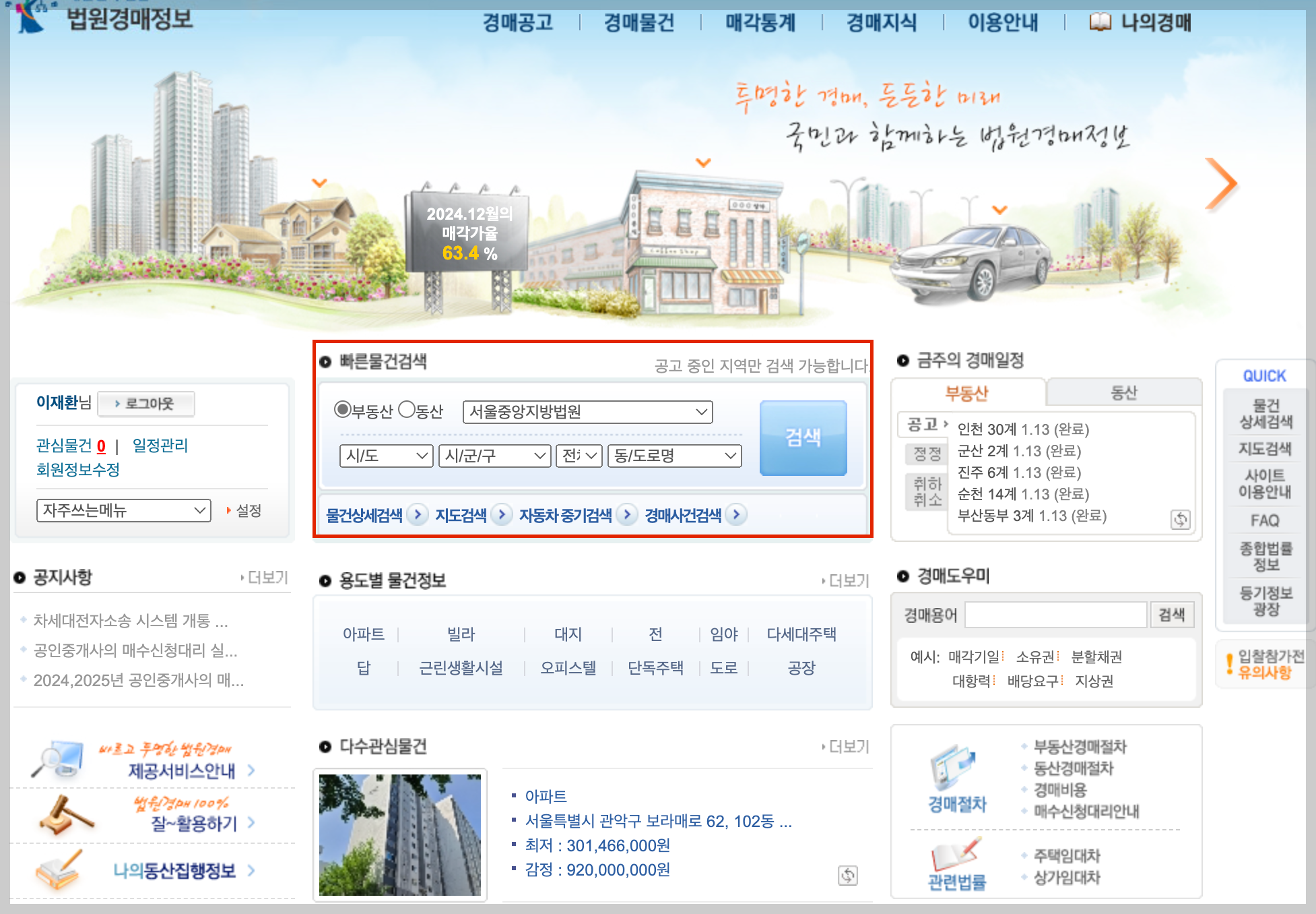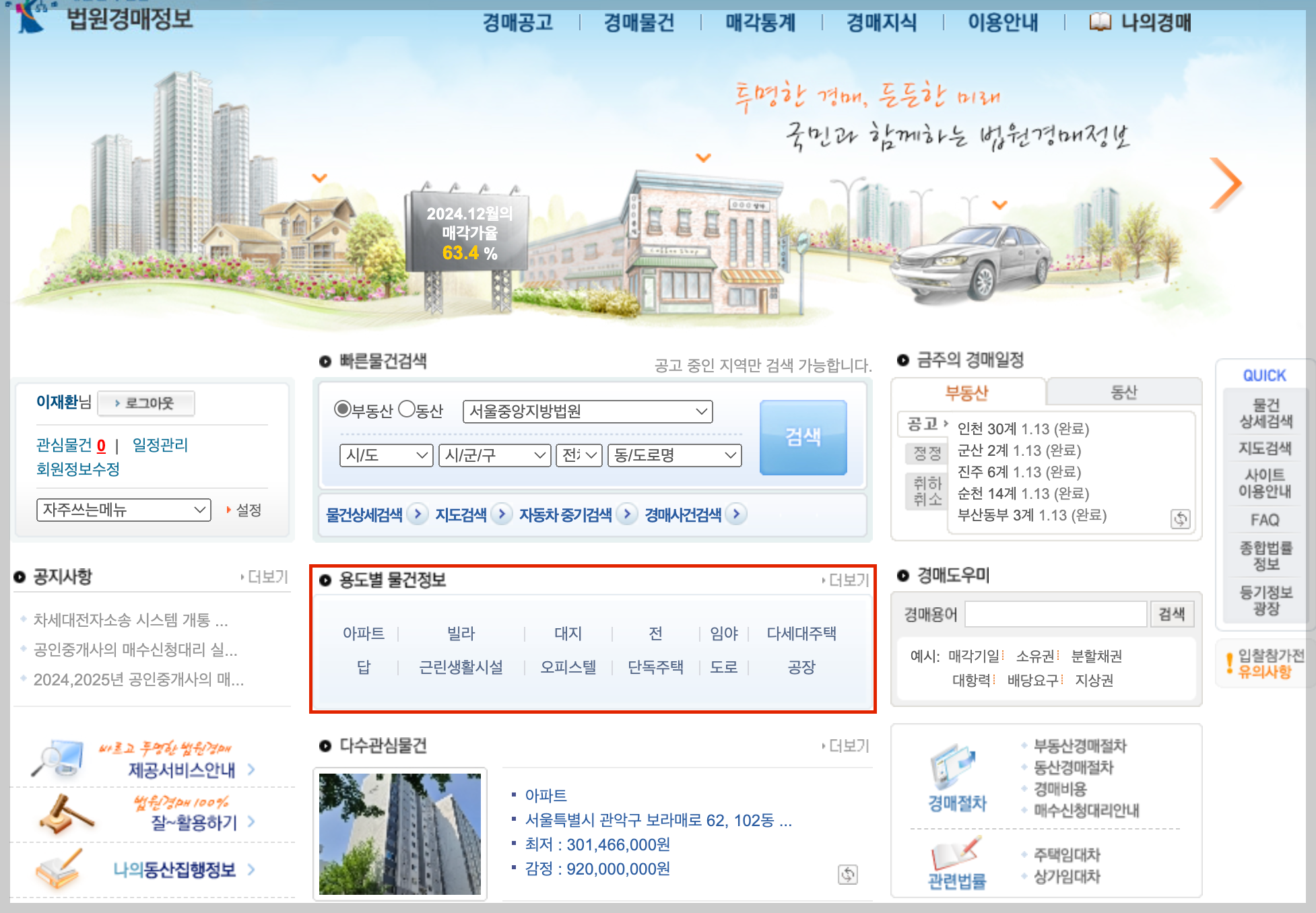 - 물건 종류: 아파트, 주택, 토지, 상가 등.